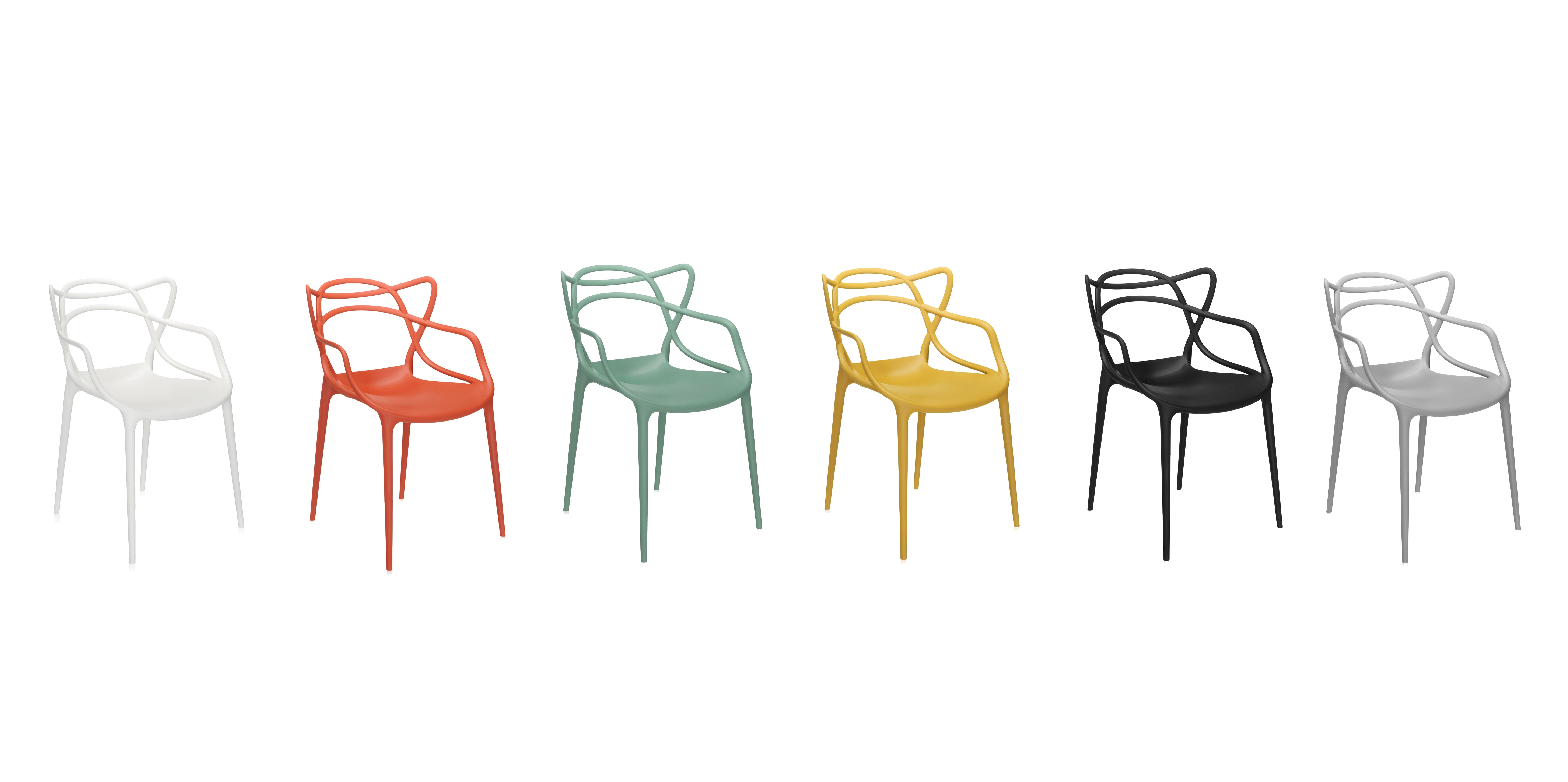 La chaise Master éditée par Kartell et dessinée par Philippe Starck rend hommage à 3 chaises très connues du design contemporain. La chaise Serie 7 d'Arne Jacobsen, la chaise Tulip d'Eero Saarinen et la plastic chair de Charles & Ray Eames. L'entrelacement de ces 3 modèles à donné naissance à la chaise Master.