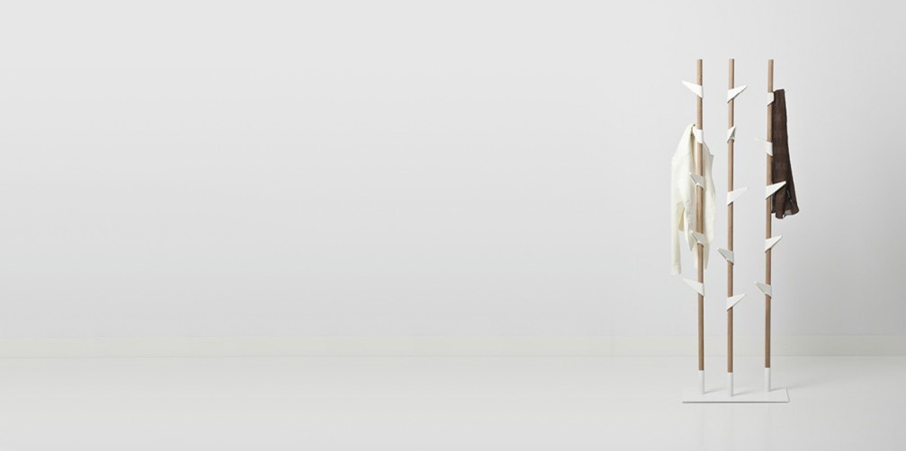Portemanteaux convenant pour 8 cintres chromés ou hêtre. Aluminium poli et aluminium RAL 9006. Hauteur 176 cm base 35 x 35, poids 18 Kg. Porte-parapluie et cendrier sur pied dans la même gamme.