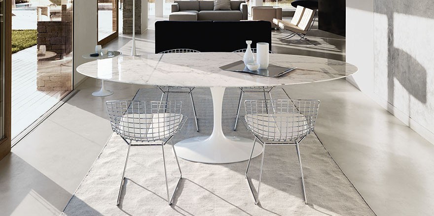 Associer la table Saarinen avec des chaises Bertoia, éditées chez Knoll